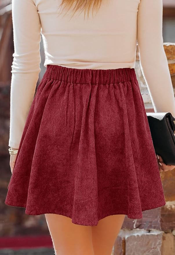 - Fabric:The button front mini skirt made of 98%Polyester and 2%Spandex, it fits perfectly and it flows well.This A-line mini skirt crafted from soft corduroy materials, comfortable to wear, easy to wash and quick drying.The corduroy pleated skater skirt creates an elegant looks ,it’s very easy to pull on and off and it’s very comfy enough for all day wear.